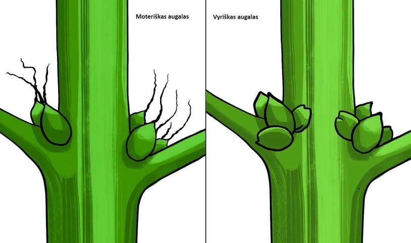 Ženklai, kad kanapių augalas pereina į priešžiedžių stadiją